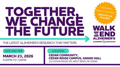 LOCATION: Cedar Community, Cedar Ridge Campus, Grand Hall, 113 Cedar Ridge Dr, West Bend, WI 53095